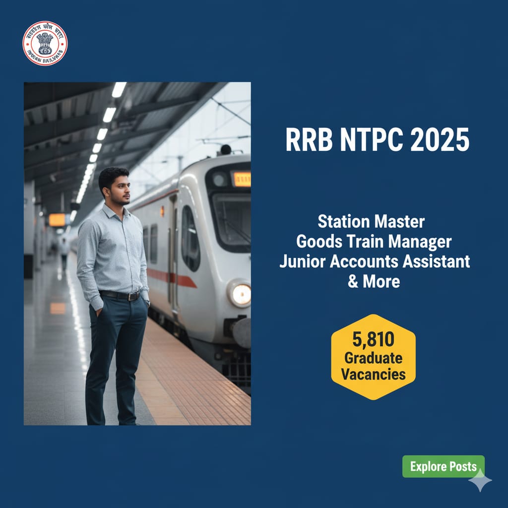 RRB NTPC Recruitment 2025: The Railway Recruitment Board (RRB) has announced a significant opportunity for graduates across India through its latest notification, CEN No. 06/2025. This recruitment drive aims to fill 5,810 Non-Technical Popular Category (NTPC) posts, including Station Master, Traffic Assistant, Goods Train Manager, and several other roles.