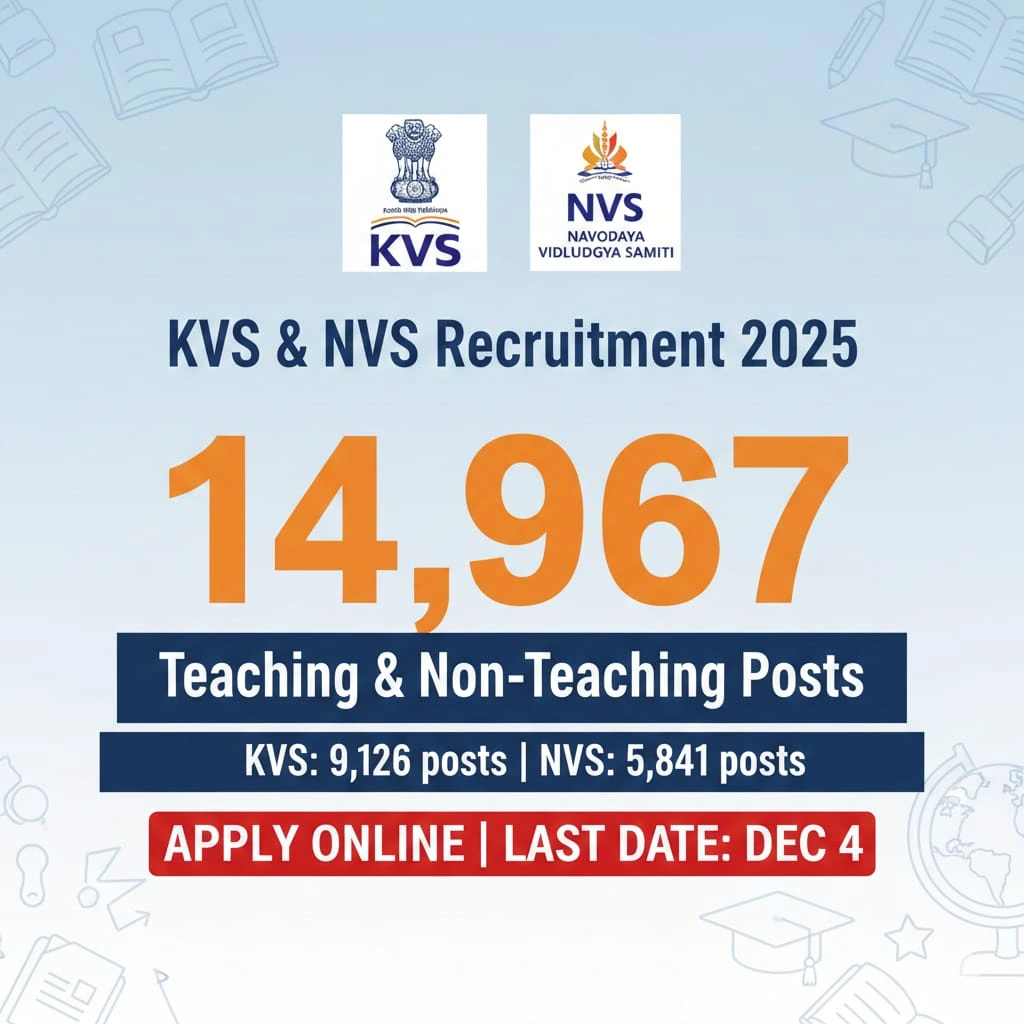 KVS & NVS Recruitment 2025: 14,967 Teaching & Non-Teaching Posts 24 November, 2025 by Lastest Govt Jobs